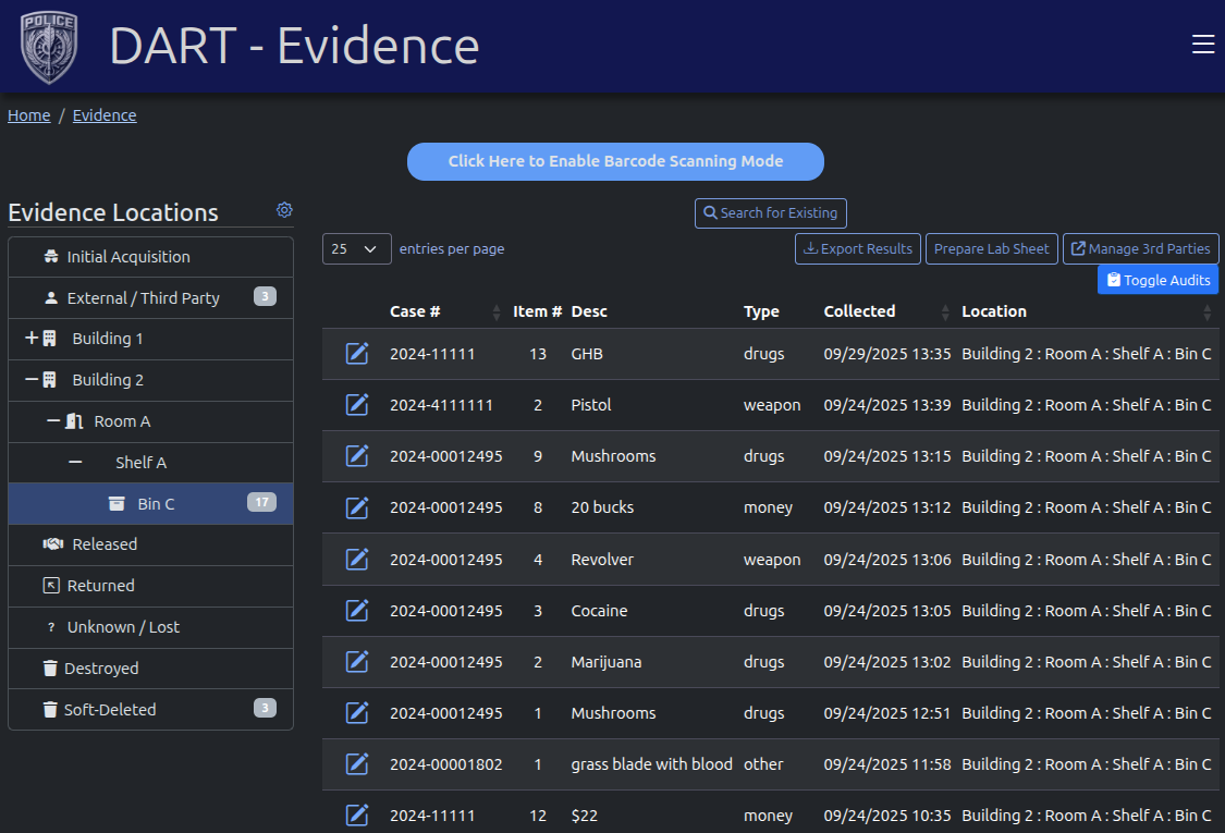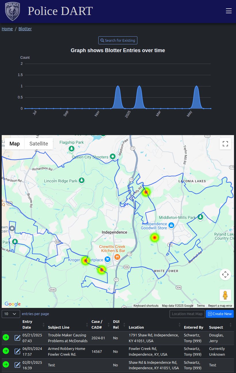 Police DART is the cost-effective multi-tool for your police agency. Stop using pencil and paper and get away from using spreadsheets for important tasks. Get solid police software with security, compliance, audit trails, non-repudiation, and ease of use/access. DART fills gaps and consolidates functions allowing you to access and control department's data with confidence.